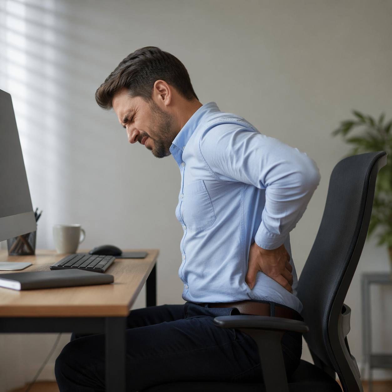 Поясница особенно уязвима при сидячей работе. Если человек сутулится или сидит без опоры на спинку стула, нагрузка на поясничный отдел возрастает. Постепенно мышцы устают, появляется чувство сдавленности, напряжения или боли. Если проблема существует долго, могут формироваться стойкие нарушения осанки, мышечный дисбаланс и обострения уже имеющихся заболеваний позвоночника.
