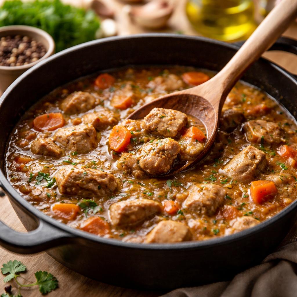 Если отвлечься от конкретных формулировок и названий, подлива — это концентрированный мясной соус, в котором вкус формируется не добавками, а самим продуктом. В основе лежит экстракция: часть веществ из мяса и сопутствующих компонентов переходит в жидкую среду, делая её насыщенной, ароматной и текстурно плотной. Свинина здесь играет особую роль, потому что сочетает мышечную ткань и жир в пропорциях, которые легко дают ощущение «округлого» вкуса без сложных техник.