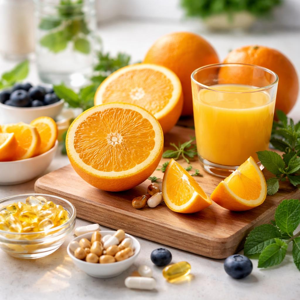 Однако значение витамина C в апельсине выходит за рамки изолированного нутриента. Он работает в контексте других антиоксидантов, усиливая их действие и стабилизируя окислительно-восстановительные процессы. Поэтому эффект цельного плода отличается от приёма аскорбиновой кислоты в виде добавки.